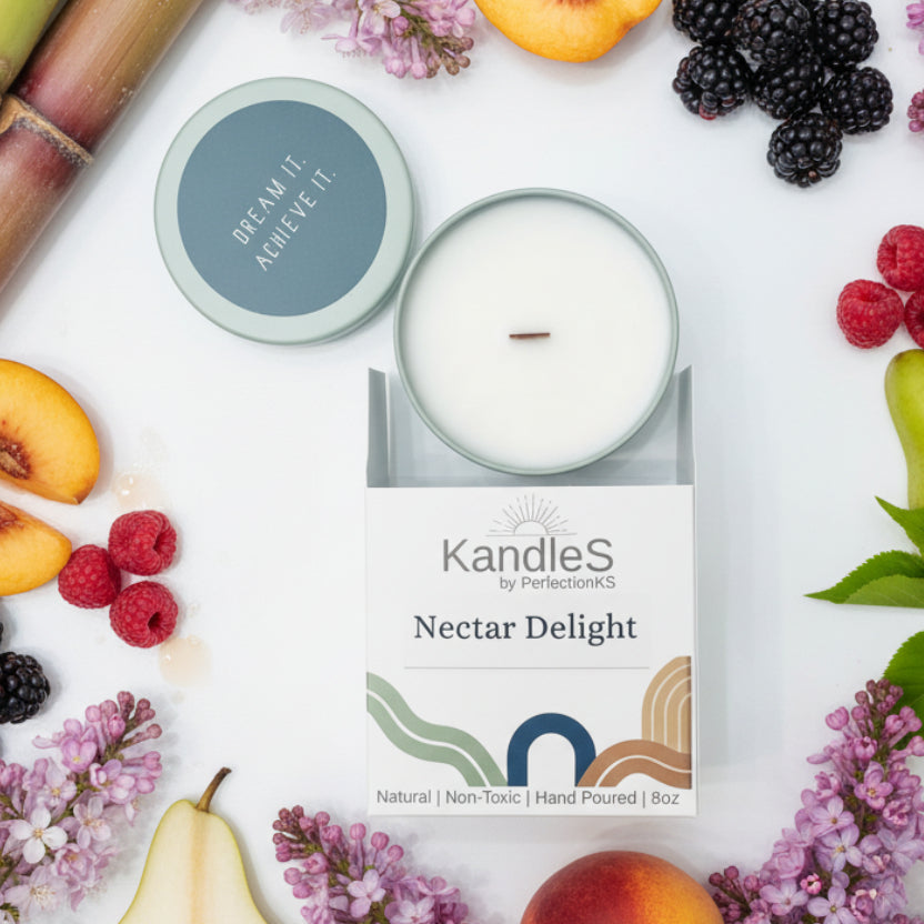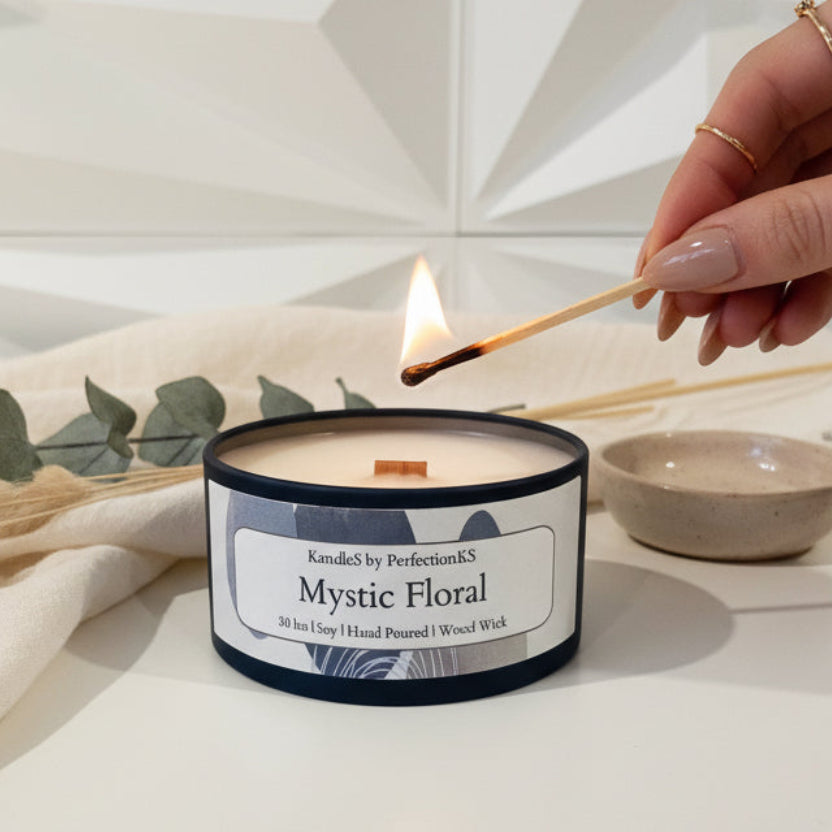 Cleaner candles for a healthier home—made with non-toxic plant-based ingredients, eco-friendly wooden wicks, and reusable, recycled tins for sustainable luxury.