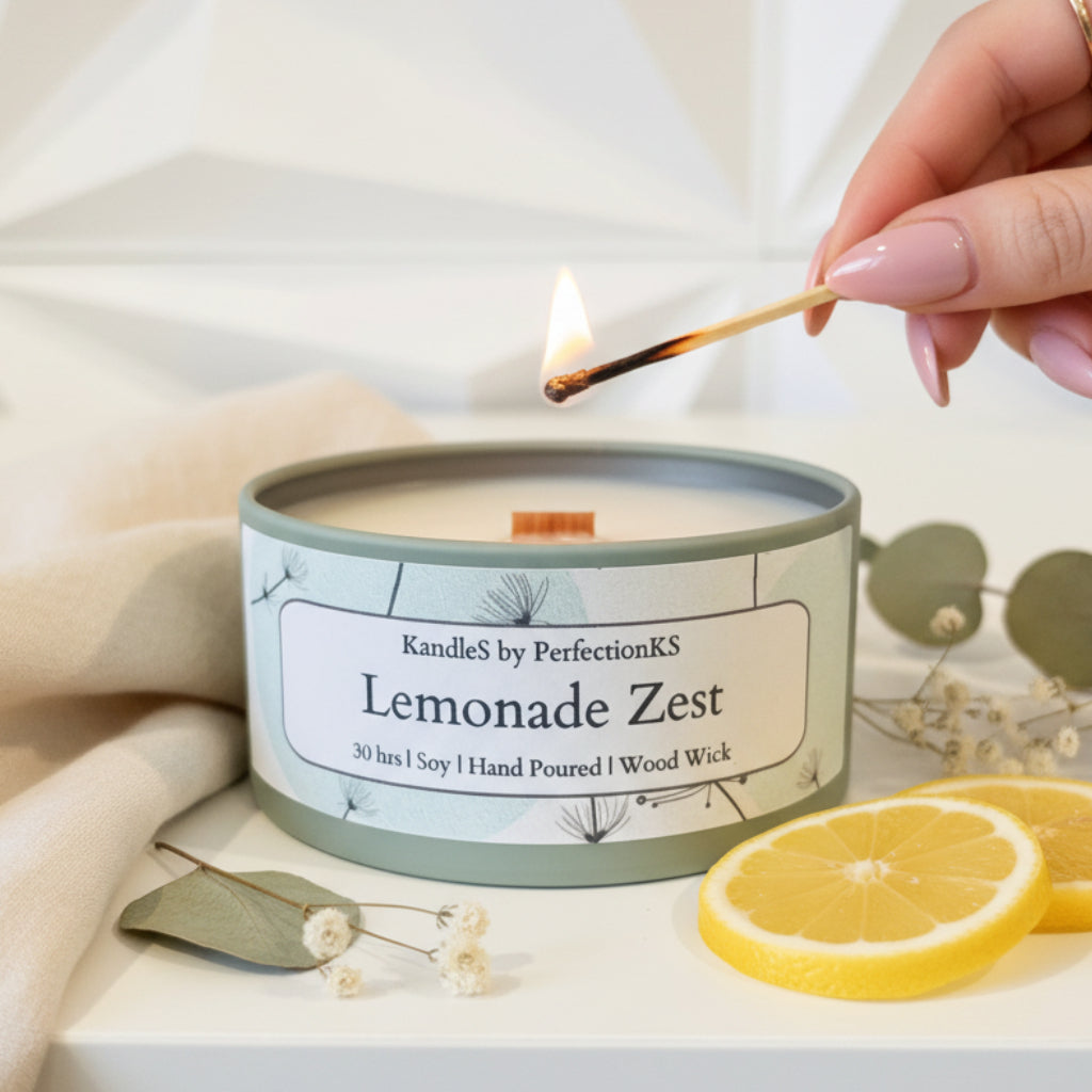 Lemonade Zest Luxury Candle | 8oz Non-Toxic Soy Candle with Wooden Wick | Clean Burn