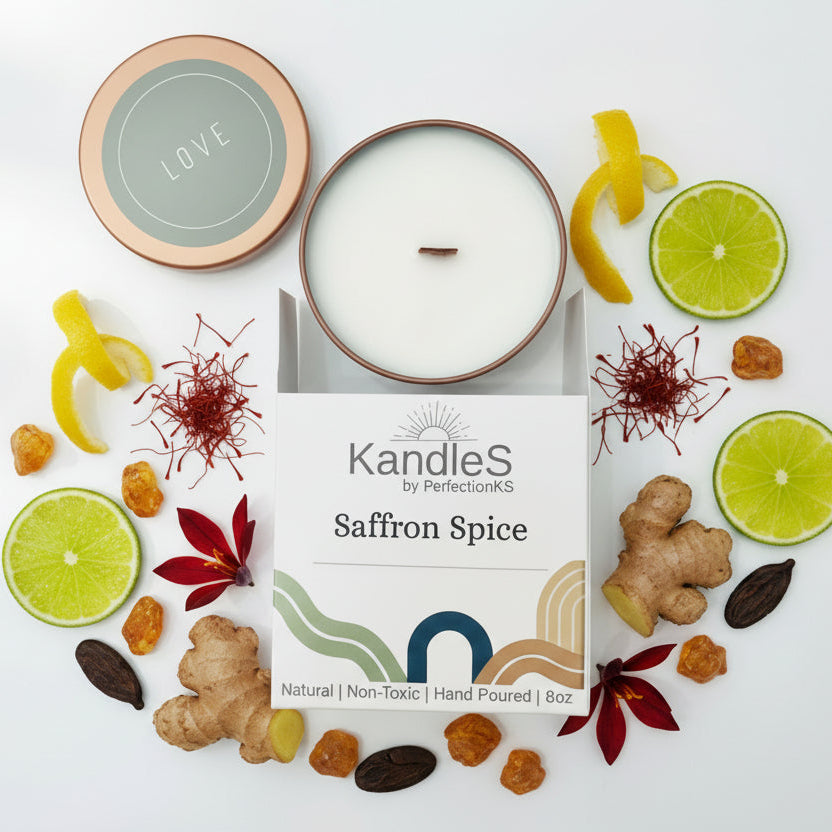 The Saffron Spice Luxury Candle combines zesty citrus, luxurious saffron, and smooth suede, layered over amber and spiced musk. This sophisticated, refined scent creates depth and warmth, perfect for cozy evenings or elevating everyday ambiance.