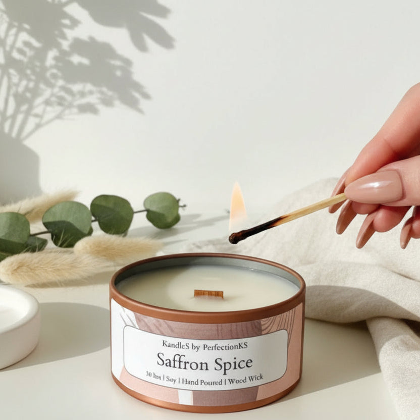 Saffron Spice Luxury Candle | 8oz Non-Toxic Soy Candle with Wooden Wick | Clean Burn